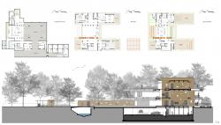 Climate is a crucial factor in design and construction. Keeping this in mind, shading devices have been used here in the form of huge cantilevered slabs that give a sort of “hovering effect” while, at the same time, offer grounding to the building. Similarly, vertical screen facades have been devised as a barrier for the elements. Inside, the strategic use of triple-height atriums makes for ample stack effect and also helps in cross-ventilation.