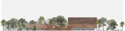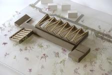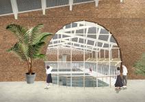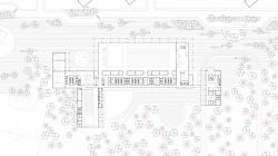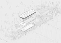 Our proposal includes the demolition of all the industrial buildings on site, thus allowing the park to take over. The aquatic centre sits on the edge, introducing an urban front which faces the city and allows for a threshold into the landscape to the south. This starting point gave the basis for a series of volumes organized along the street all connected by a linear service volume. The volumes have been spaced apart in order to allow for pockets of public open spaces to be formed in between as well as providing sunlight to enter into each volume. These open spaces are then allowed to continue through to the landscape through various breaks in the linear volume. The ground floor walls are mostly glazed and set back providing an overhang and creating an intermediary threshold between the outdoor & indoor public spaces.