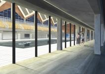 The most convenient way to arrive to the site by public transport is with the metro. As you exit the metro station, there is a wall that blocks the view of what is behind. There is no sense of identity as there is no evidence of this neighbourhood’s industrial/sports function. What one would see as they arrive to the site became an important aspect of this project. The idea was then to introduce a public square in front of the metro and design a sequence of spaces that lead people to the aquatic centre which will be positioned further down the site.