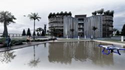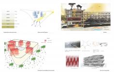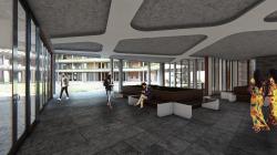 protection of the building. That's why the main materials are concrete for the structure and laterite blocs for the walls. The different spaces cluster around