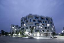 Generally speaking, the walled building has the advantage of the inner quietness, strong sense of territory and good street scenery. But the disadvantage of bad light cannot be ignored. So in the aspect of layout, connecting the accommodation areas by public space platform with linked vestibule that are made up of upper and lower levels aloft, it forms appropriate shape in size increasing the independence of dormitory and contacting each other with public place. The storey aloft as public place is with the feature of openness, publicity and service. In meeting the need of multi-function, it will also consider its scenery function as outdoor space, mastering the harmony and balance. Combined with greening, it designs the outdoor scenery environment appropriate for stop, stay and talk. The outside corridor, outdoor stairs and platform connect themselves with each other, making an echo to the theme. Breaking the dispersed form of traditional function, it increases the close combination between students and school helping creating the compound of science, education and research and brand-new teaching mode for a share, integration and openness dormitory environment.