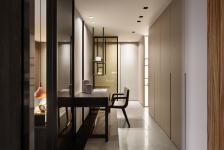 Living room is a conversion space between public space and bed room. It offers a private space for family interaction. The design is extended based on white color design of public space; however, it highlights the spatial cohesion through geometric segmentation.The bedroom is designed to make main functions gathered at the center of the space by circular shape of plane planning. A lot of natural materials are used to make natural sunshine shoots on these vertical walls, and every natural material obtains its change of light and shadow. The vertical lines make the extension of space and the space quality of warm and stability.