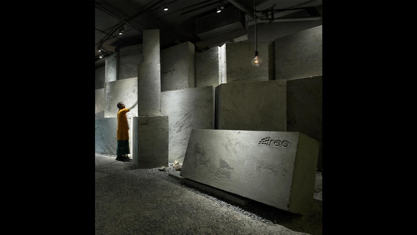 helps to cast arresting spaces. Reinforcing a raw aesthetic in common with geological excavations, rather than the current trend of