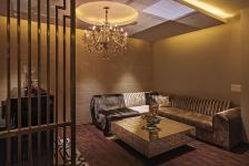 Lighting: The lighting of any space undoubtedly plays an extremely integral part of design. It can define the space, its colours, elements, materials and aura. When one has to design the space for varied age groups, the task is simple, to have flexible solutions. The main ingredient required to be flexible was the intensity for which the design team used smart automated down-lighters which can be controlled from an application in the phone. The walls are literally decorated with beautiful classical wall lamps that have crystal hangings for added effect. They are placed strategically between the boxes made from wooden mouldings. They lend the character to the space reminding one of the neo-classical and royal.
