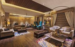 The seating groups are planned strategically to provide with all kinds of seating options as well maintaining appropriate distance for conversations. The main seating comprises of a long grand sofa with two armchairs and an ottoman. This seating is segregated by a console setting and ample space for the next one to maintain its own privacy without hindrance in sight.