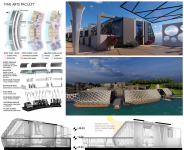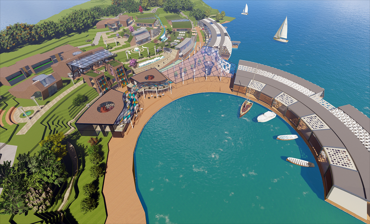 Existing slope of the land is used for differentiating the public and private areas; the higher it is the more private the campus becomes; the highest part is where the student center and the dormitory are located which is the most private part of the campus. The lower parts of the campus are more an educational zone with the university buildings and library, while the lowest part which is where the marina, boatyard and the commercial spaces are located is more a historical and commercial zone. The ruins of the fortress located around the site make the entire campus a historical and touristic zone, while the boatyard facing to the marina and the rest of the educational buildings makes it an educational zone, the restaurant and the workshop that is open to public makes it also a commercial zone. A recreational area has been created in the center of the marina which is for public use, it can be used as a festival area, leisure space or an exhibition area throughout the entire year.