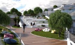There are cafes, restaurants and co-working at 1 level. All of them have exits to the common internal courtyard, where will take a large open-air events and outdoor meetings.