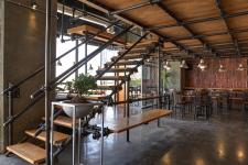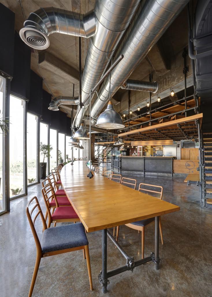 The possibility for establishing other branches of the café in future was considered in order to fulfill the owner’s request.Scaffolds are used as the main structure of design which grants an identity to the space.