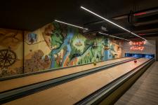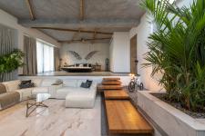 The vision was to create a dwelling space keeping three concepts in mind elegance, sophistication and grandiose feel.The open floor plan allows for limitless interaction in the living area along with dining space. The black painted stairs with wooden backing compliment the wooden design ceiling giving a cosy feel to the space, enhanced with the magnificent chandelier and the art on the wall goes well with the tones of wooden panels used in the staircase as backing. The triple height courtyard placed in the heart of the house acts as a element that unifies the house vertically simultaneously provides a visual barrier between private and semi private spaces such as living and drawing areas in the ground floor level. To one side of the courtyard stands a wall treated with stone clad that extends to second floor, this seamless clad adds a monolith character to the courtyard.The informal seating at the beginning of the house has been treated with the bespoke Kalamkari Work art piece that extends from wall to ceiling opening into the courtyard.The narrow stretch of the pool with its wall designed to camouflage with the existing boulders on site was placed abutting to the living and dining areas, provides a calming view from the interiors maintaining a tranquility in the atmosphere with its granite clad as a backdrop.Pooja was placed along North side window that invites day lighting into the room. The recessed platform into the floor with a shallow water body on three sides for Urli emphasizes and sanctifies the area to enhance it further, the ceiling was treated with wooden panels with hanging bells that adds traditional architecture touch to the place.The master bedroom at the second floor is a treat to the house with its split level design and further treating the transition of these level with wooden steps and ceiling with wooden rafters marks the character of the space. The space has been enhanced with a skylight to bring in optimum amount light to light up the space in a natural way and provided foliage complimenting the skylight, this duo provides a soothing and refreshing feel to the space. This nature and art combination flows through to the master toilet as well.Second floor lounge has its own style presence with its Subdued stone cladding and clean settings that set the vibe of this lounge on floor.The terrace has on outdoor living space, treated with glass roofing for indirect sunlight while also providing privacy from neighbouring plots with the use of granite blocks as a privacy screen.The bowling alley in the basement is an element that sets the mood for the informal activities, with its rustic style interiors with stylish neon light on a brick texture. These provides a raw look to make the area stand out from the rest of the house.The facade design for the house involves the play of two projected cubes cantilevered on either sides, treated with high windows and fixed glass to bring in the natural rocky terrain that surrounds the house.