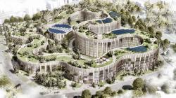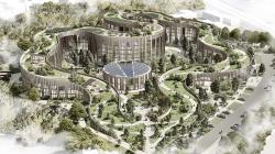 The project is articulated with an entrance from the north that reveals a stunning view of the sculptural, organic volume that rises slowly from the ground level and welcomes people into the area. They are invited into the court yards or inspired to take a stroll of the publicly accessible, green roof landscape.