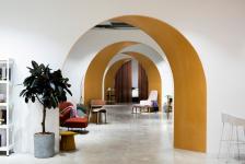 When it comes to WOWDSGN MixC, the multiple arches offer independent bays which become a series of scenes. Arches reveal their spatial tension rather than structural and mechanical properties. In this case, we take the authority of geometric form and even transform it. The curved arch not only obtains spatial tension but also converge dramatic scenography through different directions. In addition, the material of the arches is inspired by Alvar Aalto’s bending woods. The cherry veneer coated with varnish was applied to the arches.