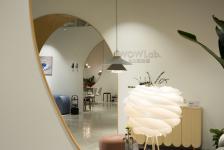 The whole interior is divided into three parts. The front hall serves as a small accessories display area. The central hall presents the daily scenes such as the dining room and living room. And the back hall has a bedroom scene. We want to create a private daily living place within public Shopping MALL, offering guests the immersion at home.