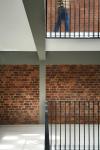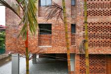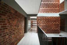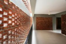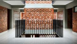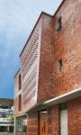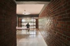 The lobby presents a cool and soothing micro-climate effect owing to its landscaped central courtyard, permitting louvered cross ventilation – both horizontally and vertically, across the cross-sections of two floors above. The natural texture and colour of the brick, the scaled proportions of the spaces and interplay of light and shadows through the brick louvers (i.e. fenestrations) endows the Lobby area with a sense of warmth and calmness, which is both welcoming and cathartic for the patients and their carers. There is a formal living room adjacent to this lobby for the visitors.