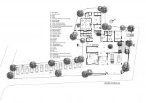 The Site planning focussed on allowing the Ambulance or the Patients’ car(s) to enter from the main (eastern) gate in the front upto the entrance ramp. The screening veranda has inbuilt brick seating capped with a timber plate integrated with a landscaping trough planted with high oxygenating plants.