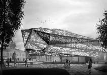 Coming to the building, the spaces from the ground up to the 2nd-floor area of interactive nature and the lower ground is dedicated for the exhibits and archival activities. The overall arrangement of the program on the site and volumetric placement takes its cues from the historical development of the language. The basement houses permanent galleries of language, divided as per the genetic classification of language into families and a dedicated space for the archive. The first floor takes the second level of language engagement that is the focused speech. This level has an auditorium and seminar rooms. The top level of the museum houses the most advanced form of language, the written script. This floor is dedicated to a library with audiovisual facilities and learning centers. The central symbolising human brain covers an informal sitting area of the library dedicated to the formal discussions in an informal setting and generation and sharing of ideas. The communal space is followed by the the exhibition space where temporary display of physical aspects would be showcased. The way to the private section or the library upstairs or the learning sector is also through the exhibition space. The whole library and the stack racks are arranged in a broken continuous flow for avoiding any kind of negative space or dark corners.