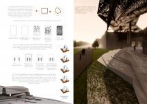 For the façade skin use of zinc plates as a part of the distorted façade building material, perforated with varying linguistic syllables generates magnificent shadows on the floor that makes the visitor read while walking into the space also making it a conversation starter. The idea is to impart a sense of unity amongst the visitors and at the same time generate a sense of curiosity to explore the depths of the space.