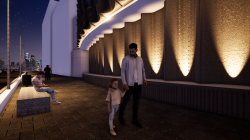 The use of light, shadow and color along with responsive architectural systems creates a dynamic and attractive atmosphere for the audience. It also encourages movement on designed routes.