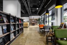 The color design concept is “Nature”, behind EP-Books is a quiet park, the designer designe open windows toward the park, not only made the whole space well ventilated but also brightened it with plenty natural lights. Unlike traditional bookstores, the loft interior design style made EP-Books much fashionable and relaxable. The designer struck a perfect balance between nature and modern, and that’s what makes EP-books so popular.