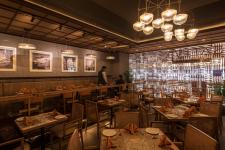 One enters this fashionable contemporary-vernacular fusion to delve into a spirit of nostalgia and goes adrift savouring its rustic tellurian interiors that grant the patrons a traditional Indian feeling. The dining space is divided into various seating arrangements across the expanse through a railing done in glass & wood. The restaurant walls are covered with mute texture paint on three sides with a ceiling outlined in cane cladding and wooden moulding grid which adds an indigenous touch to the sphere. The seating running along the walls is incorporated with an interesting detail where jute is woven intricately on the top edge, forming a distinctive sense of style. The nuance added through spectacular vignettes of vernacular heritage and culture expounds the concept of this restaurant, conferring onto a modern yet edgy essence at the same time.