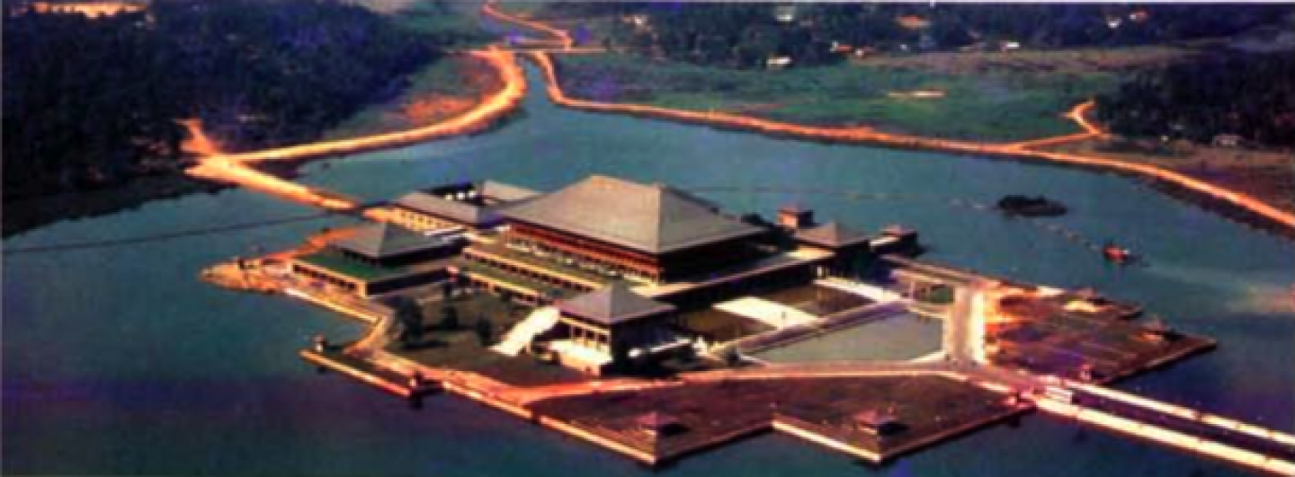 The project was commissioned by President J.R. Jayawardene in 1979 and was in recognition of Bawa’s increasing prestige. The completed design brought him even more international kudos. The Parliamentary complex is Bawa’s most symbolic work, conceptualized as movements through spaces, resulting in the asymmetrical configuration. It is also perhaps the only project where he has allowed form to override the priority of landscape.