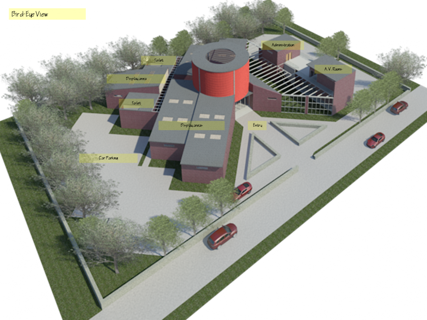 4. The museum is designed in such a way that it has an arrival area/waiting lounge in the center with all the display areas along its circumference