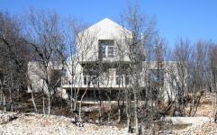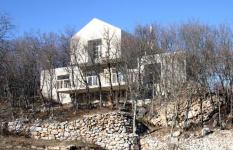 Upper floor volume is transposed over bulwark on the sloping site :: All facades and roof are built in stone, worked out in three gradation of fineness :: Author > Emil Sverko
