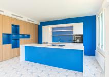 The concept celebrates the aesthetics traditionally seen in the interior design of the flats of the Eixample district. The interior design preserves and restores traditional architectural elements such as the Catalan volts in the ceilings and hydraulic tiles on floors, as well as opening up the spaces to make the most of the brightness and the pleasant weather of Barcelona. The overall white palette is broken up with interesting features like bespoke shelved walls which divide the spaces without closing them up, walls painted in trendy green and blue hues and a careful selection of exquisite Catalan and Scandinavian furniture.