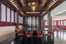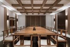 The flat roof structure of the east and west wing-room is covered by a small, regular square coffer, re-vealing solemnity, simplicity and amiability. It also conveys the respect to tradition from contemporary de-sign.
