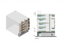 The design idea was based on creating a connecting and reliant element on all floors. This central element which is in the inner shell of the bricks, has the effect of the transition from the two-dimensional façade to three dimension object. By rotating and bend the wall of this core object (ring), a part of interior private space is dedicated to the terrace space and the building façade was formed as the interface between urban space and the building interior. As a result, the living and dining room created on each floor. Accordingly, more and more of the spaces inside and outside were merged, which helped to create more various view angles on the façade external view. The private walls (the rooms) also reached a higher level of privacy with a slight retreat, while having a terrace. The formation of the three-dimensional façade helped to create a hierarchy and distinguish between the private and public area of residential units in the exterior façade.