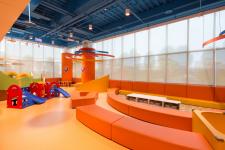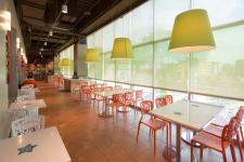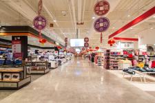 Add this experience area of each district, to create a comfortable environment and 3000K color temperature for lighting. The different colors of the district, the openness of circulation, the convenience of self-checkout, the visual open the kid's play space, the natural lighting of the rest space. The use of warm wood ceiling in the food area. Helping customer is focus on diverse merchandise, and like feeling in the European market.