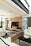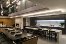 A new bar was added next to an expansive lanai, with an 12m frameless folding door opening the living spaces and bar to the lanai. A new pool with an adjoining fire-pit was built on the north side of the property. The family room is a double volume space behind the lanai, getting full north sun in winter through the floor to ceiling windows above the lanai.