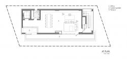 This building was designed to house YKH Associates Architects in Seoul, Korea to include at least 40 work-stations, a large conference room, two small conference rooms and two separate offices for two principals and a roof garden. The site is a small, long rectangular shaped area of 219 Square Meters with a level difference of 4 meters between a 4M-wide road and a 6M-wide road located in the tight residential area of Gangnam Gu, Seoul, Korea. The building code allowed FAR of 200% and maximum site coverage of 60%; there was an additional building code requiring a diagonal sun-light path on northern side for neighbors.