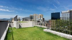 We planted a 40cm-thick natural grass on the rooftop area to be used as a rest area for employees. To allow more ‘green’ and ‘daylighting’ entering into working space, bamboo trees were planted on the 4th level principal’s office and a sunken B1 level. The code-required 4 parking spaces were placed next to each entry of 1st and B1 level; this allowed minimal excavation thus reduced a considerable amount of construction cost.