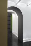 Character Café and Gallery has two courtyards in the front and back of the building. Front yard's seats are surrounded by greenery and relaxing sound of water and the backyard has its own seating area next to pine trees and dense greenery. Ground floor is designated to main lounge, bar and service area, and it has access to the management office, control room and terraces with the folded ironic stair. Considering preservation of this complex plan was one of our most important presuppositions in the design of this project, so we decide to apply different colors in hallways and other spaces in order to give the audience a better understanding of spaces.
