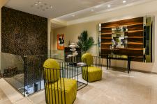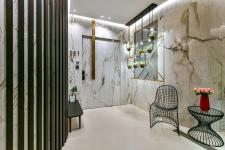 Articulated to illustrate a breathtaking view, the entrance lobby has been rendered a posh outlook by using Michelangelo marble. The same marble has been innovatively implied on different surfaces such as the door and all vertical surfaces. Leaving no stone unturned to penetrate custom made mosaic in the same marble, metal inlay and use of wooden rafters are some of the elements that have been heavily used.