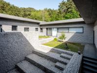 Located in the foothill of Seolak Mountain, one of the main challenges of designing this villa was to respond with the context of its site. In this hillside location, the solution was to adapt an ancient Korean traditional courtyard design. Along with the natural topography, four volumes are stepped and formed a courtyard. 400 M2 house with five-beds and four-baths, has four wings: Master Suite Wing, Living & Dining Wing, Kitchen & Amenity Wing, and Guest & Gallery Wing. Inward view of this courtyard, not only accommodates various family activities but also provides a mountain view through the center opening of the courtyard which enhances a quiet and contemplative aura and avoids the unpleasing view of the tomb and the adjacent hut.