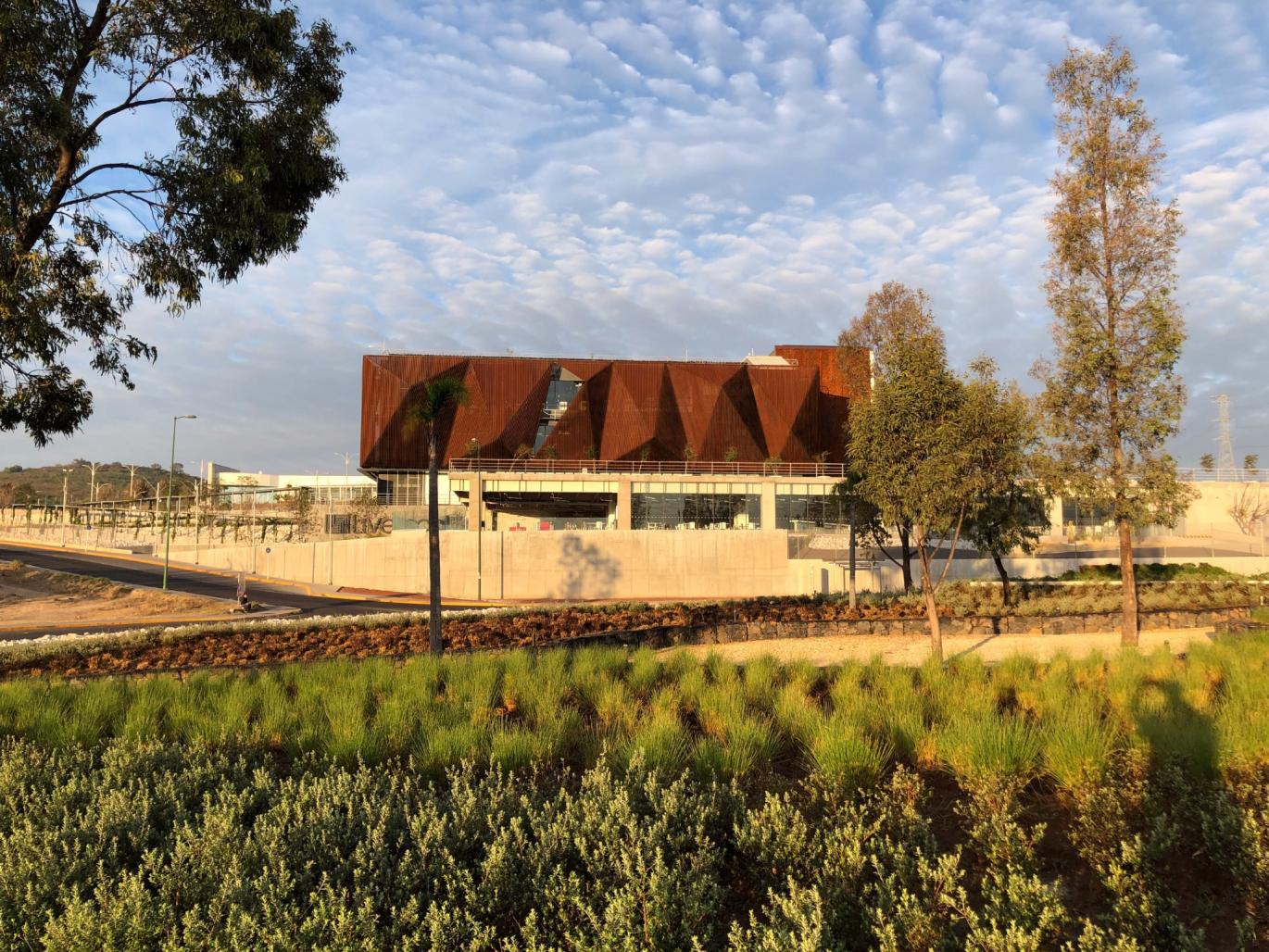 We were commissioned to design of the façades and the roof garden of a rectangular building of 60x40 m and three stories that contains a call center, on the outskirts of Morelia. These buildings are the first phase of a future corporate campus.