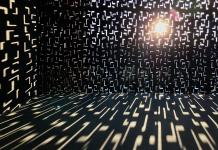 The panels and two accesses face east and west. Every morning and every afternoon the lobby is filled with sunrays that paint the interior with moving patterns. Twice a day it becomes a solar observatory. A spiritual space to celebrate the act of working.