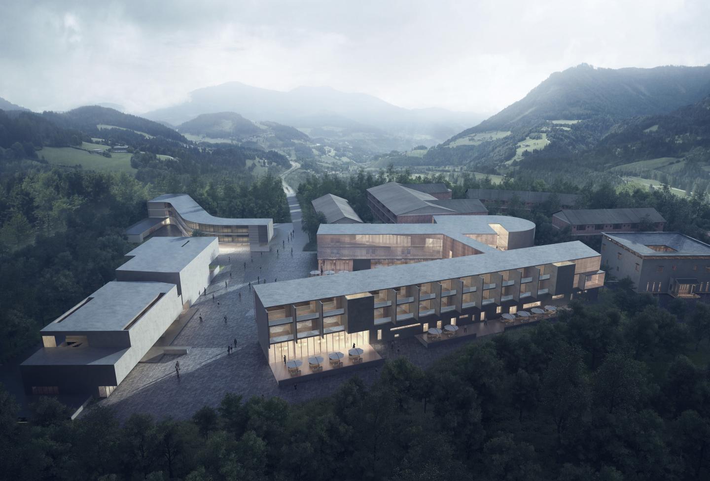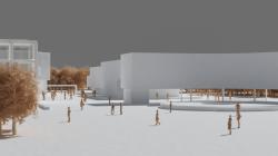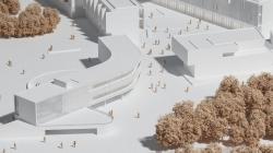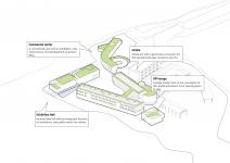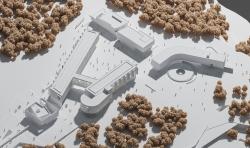 The workroom uses surface modeling which is full of visual impact. Through the change in the extension of the arc surface, it makes the buildings unified into a harmonious entirety although they express different functions.