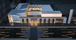 The first response lies in the contemporary nature of the building. In terms of form, the sculptural building blocks highlight the pure and organic characteristics of contemporary architecture through the combination of undulating changes. The bevels and insertion also form an architectural group with modern aesthetic symbols. The complex architectural form is abstracted into a unified, refined and neat geometric body, which is connected into a complete complex in an orderly manner. The unique environmental attributes of grassland culture have formed a magnificent and vast context, and in order to adapt to such a huge site background, super-scale buildings are needed. In the project, the 9m-high colonnade and 12m-high doorway all respond to the vast grassland and majesty of the regional character.