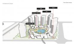 The structure of building groups, which is an integral part of the overall planning of an industrial park, describes how single buildings are connected and grouped in blocks. This is closely related to the function of each building. The residential areas in the plot C form a circle around a courtyard, thus creating a complete and intimate space internally and facilitating corporate communication and cooperation. By contrast, the plot B is dominated by flexibly arranged blocks, and more commercial space is planned along the streets. These detached buildings will be welcomed by medium-sized and large enterprises.