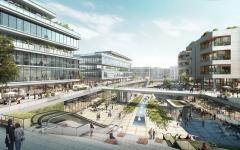 The landscape axis runs through three plots and connects five digital economy platforms, which make up the whole industrial chain of digital economy. This will be the focus of the project layout. Science and technology platforms, cultural facilities and ecological environment are well organized in the site, where digital economy businesses, innovation ecology of city-industry integration and leisure parks can be found.