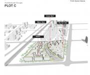The planning structure of an industrial park refers to the spatial organization of building groups, roads, landscape, and other types of community infrastructure. Generally, the layout can be centralized, linear, decentralized, and clustering. The plot C is organized by a network structure so that buildings can be planned in a decentralized and flexible manner, while some of its areas adopt centralized and linear layout.