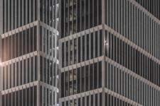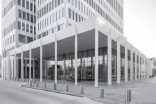 Due to the height limitations on the site and the amount of floor area required by the client, HPP divided the tower in order to emphasise its vertical character. The arrangement of the facade contributes significantly to the visibility of the high-rise: The block-like arrangement of the triangular aluminium facade pillars, the positions of which are shifted every two to three storeys, produces changing light-and-shade effects according to the position of the sun.