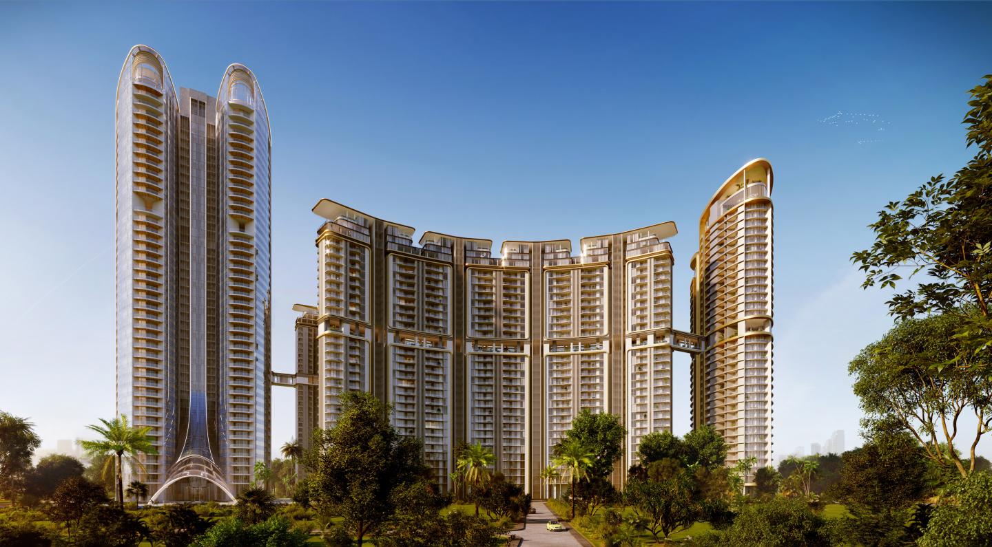 An interesting feature in the design is that open greens have been optimised, covering about 40% of the site area, i.e. about 12 acres of the land is occupied by the greens. The Amaryllis is envisioned as a visual marker in NCR region. The design offers a large, vehicle-free lush landscape, that is surrounded by luxurious high-rise towers ranging from 32-34 storeys and 135 M in height. Enabling efficiency in design, green areas are crafted to serve as urban lungs within this congested area, serving as a social platform for the community. With 46 floors, a 180M high Iconic Tower has been designed to define the skyline with its curvilinear design, exceptionally sought after amenities and branded residences by Versace. The prime intent of the design is to provide a large expanse of greens along with a premium living in vertical.