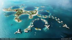This unique design takes its inspiration from the coral reef formations known as atoll, which is a ring left from a disappearing underwater volcano.