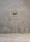 I tried to create a space that was free from the concept of time by painting the floor, the wall, and the ceiling with mortar, and by applying a white line drawing on it to mix the actual thing with the illustration to create “imaginary” and “real”.