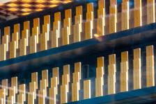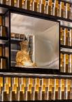 The plaques of the deceased to be brought into it are illuminated by the soft lights on the back, as if they were light beams behind a Buddha statue.