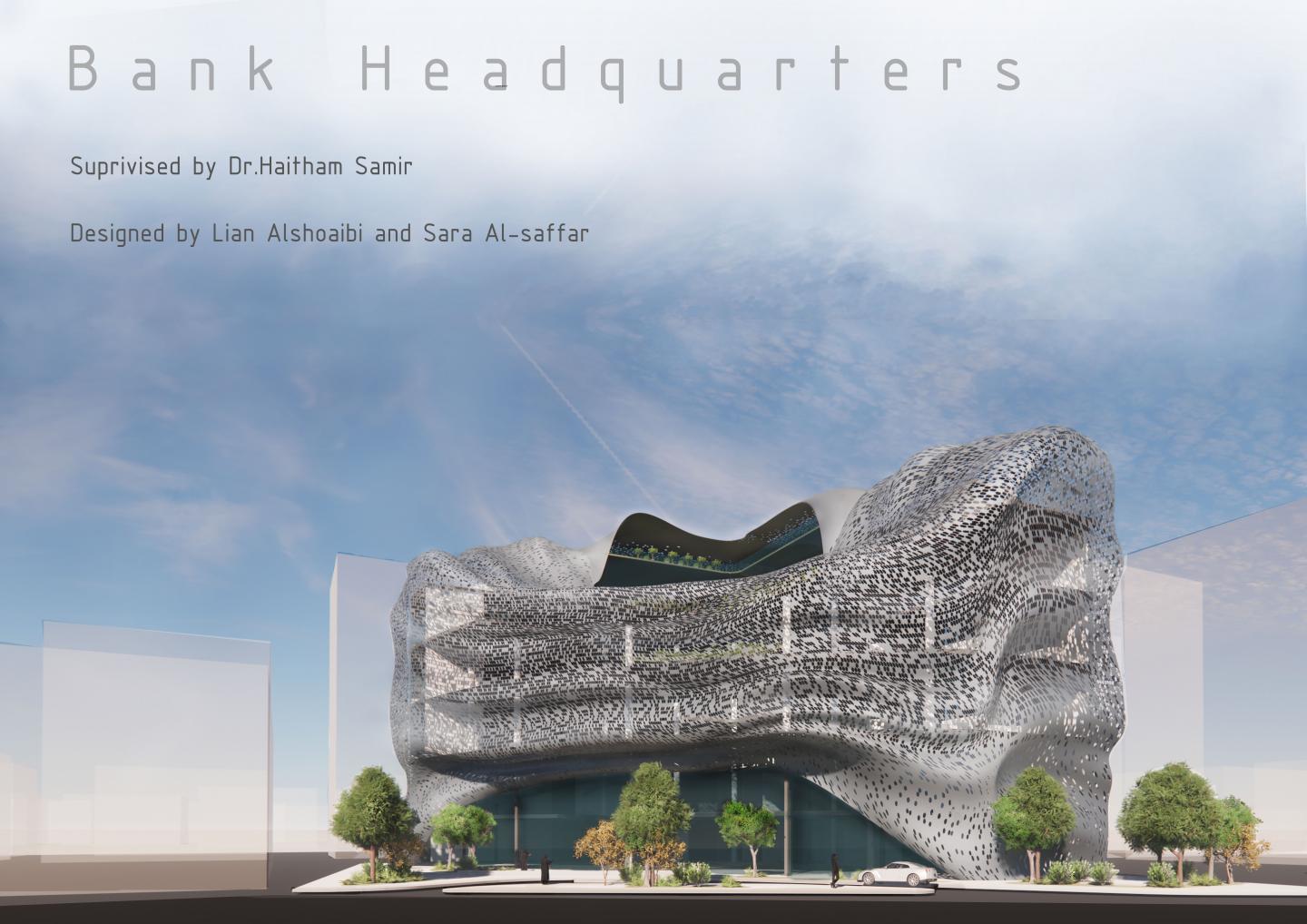 A local leading bank is seeking the establishment of a new headquarters that would be a landmark in the urban texture of Jeddah. The bank headquarters is located in Ash-shati District which is a mixed area that consists of residential and office buildings, as well as important landmarks to the city of Jeddah. Therefore the new bank headquarters will serve the public and will be a prominent part of the area given the importance of this district. A primary sect of the building consists of two podium floors (bank branch), and this function is facilitated further by the presence of heavy pedestrian and vehicular movement in the district.
