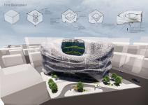 The aim of the design is to break the usual rigidity of bank headquarters and user segregation. This is achieved through a unified mass with an internal experience that is shared visually between public and private, while still maintaining the needs of each user.
